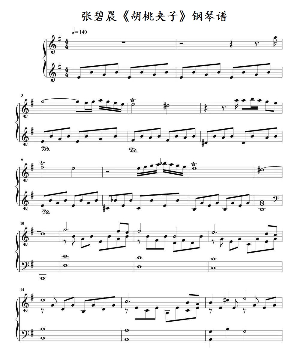钢琴张碧晨《胡桃夹子》钢琴谱