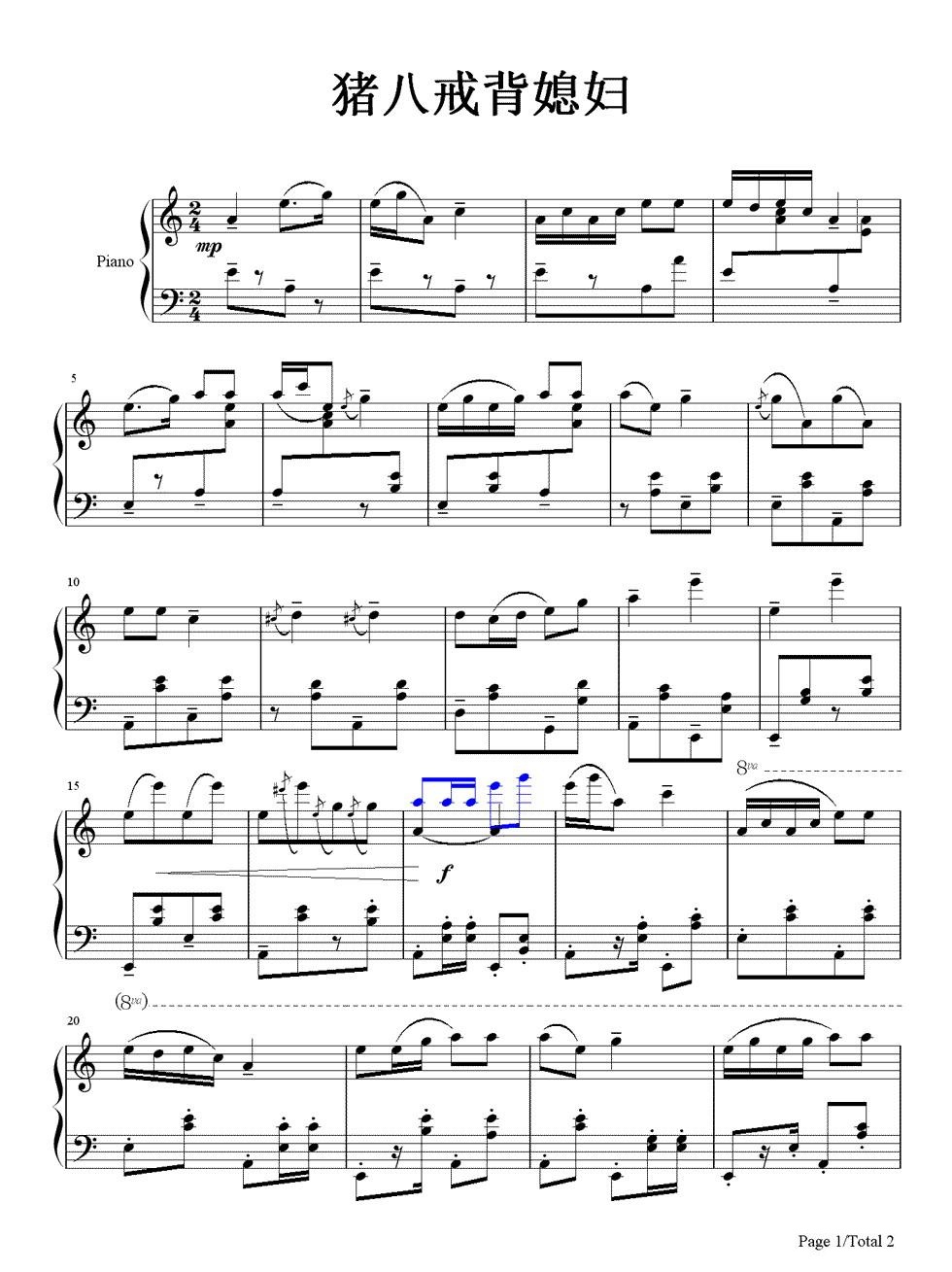 钢琴《西游记》插曲《猪八戒背媳妇》钢琴谱