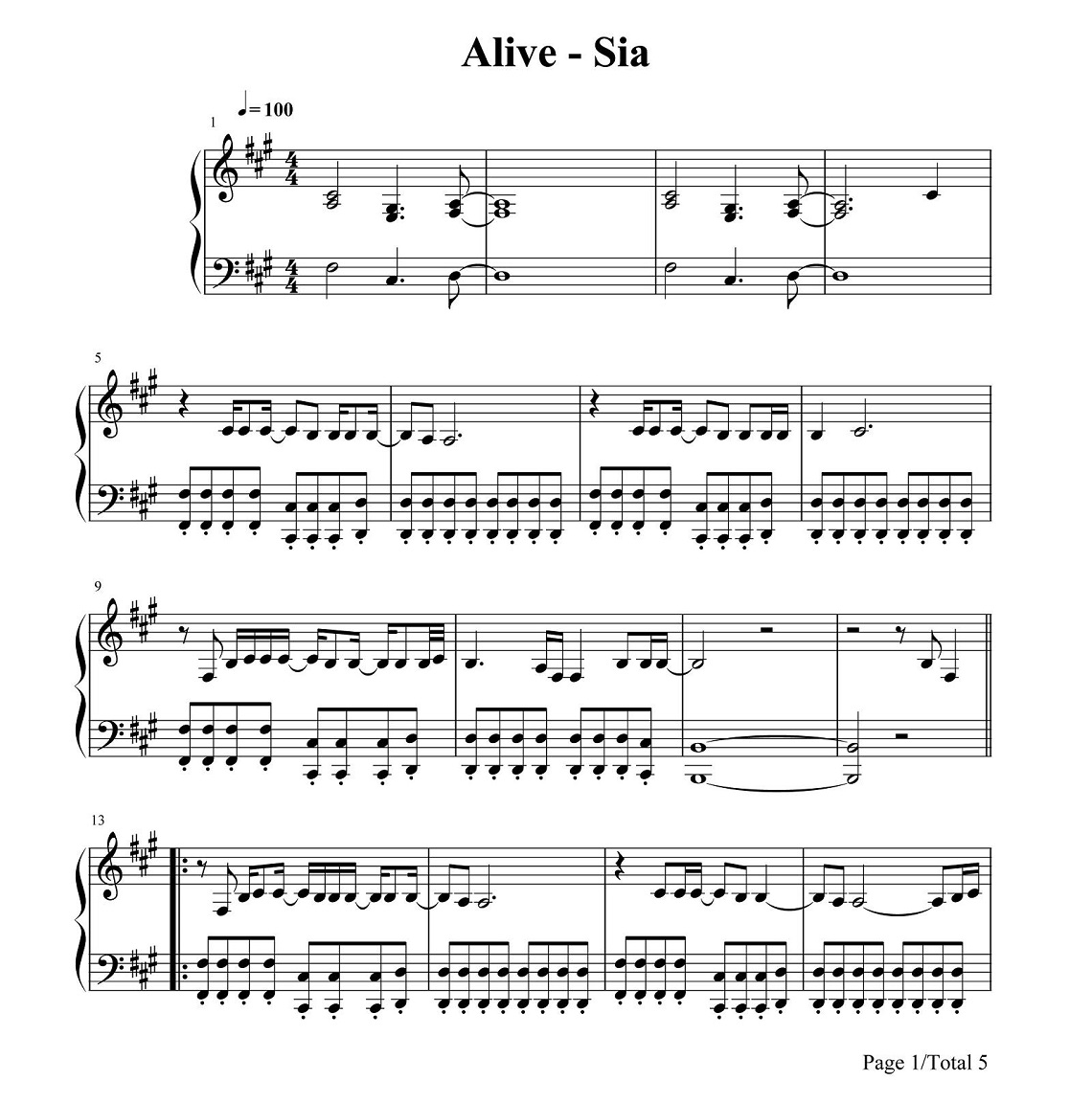 Sia《Alive》钢琴谱...