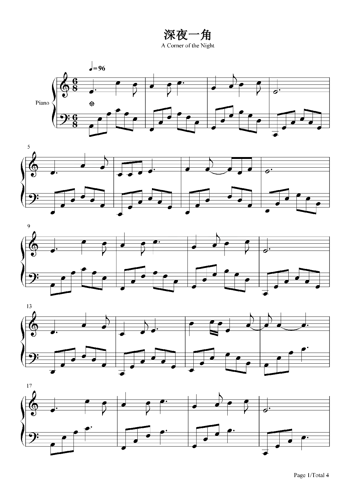 毛不易《深夜一角》钢琴谱...