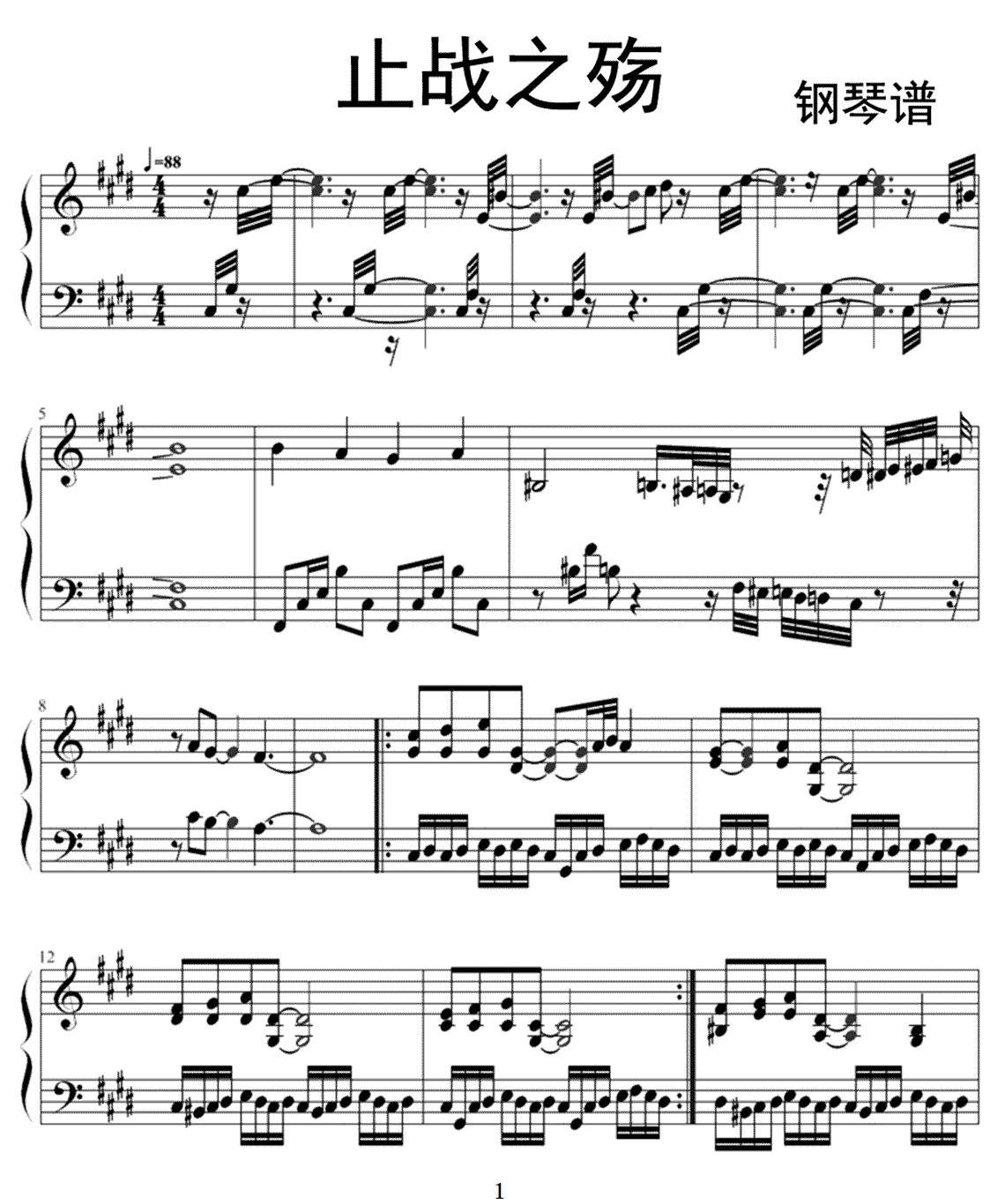 钢琴周杰伦《止战之殇》钢琴谱