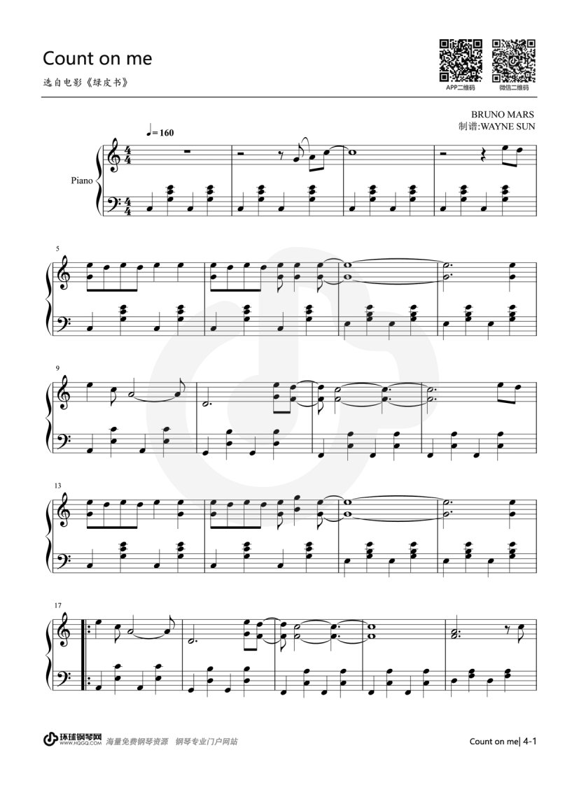 钢琴《Count on me》钢琴谱-选自电影《绿皮书》