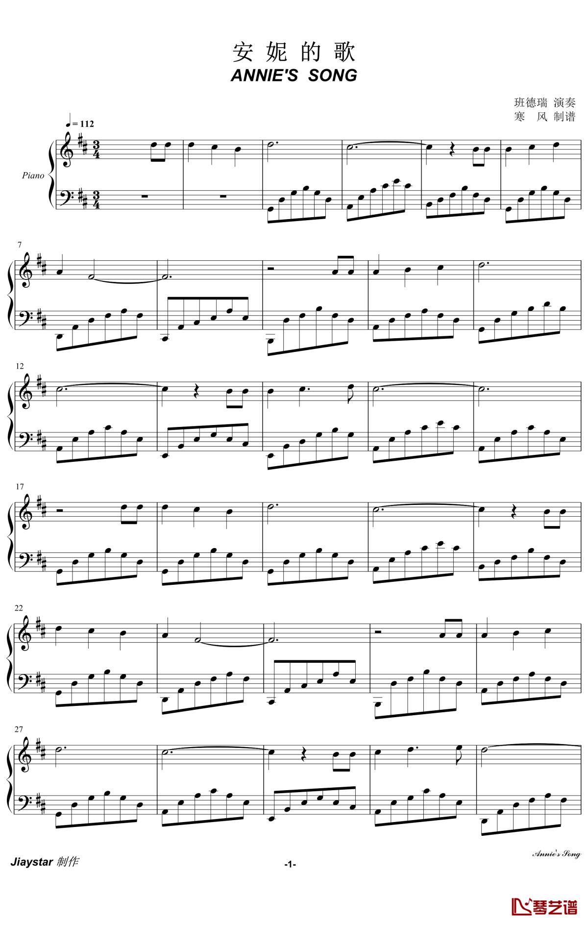 班得瑞《安妮的歌》钢琴谱...