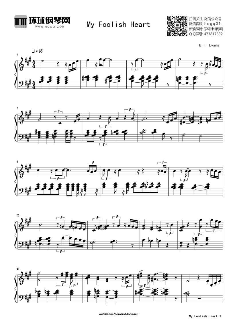 钢琴《My Foolish Heart》钢琴谱