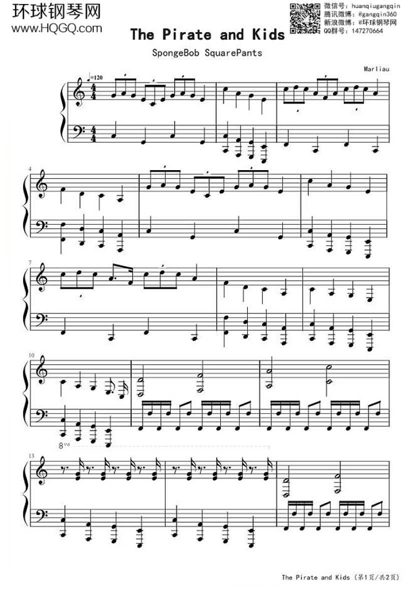 《ThePirateandKids》钢琴谱(《海绵宝宝》主题曲)...