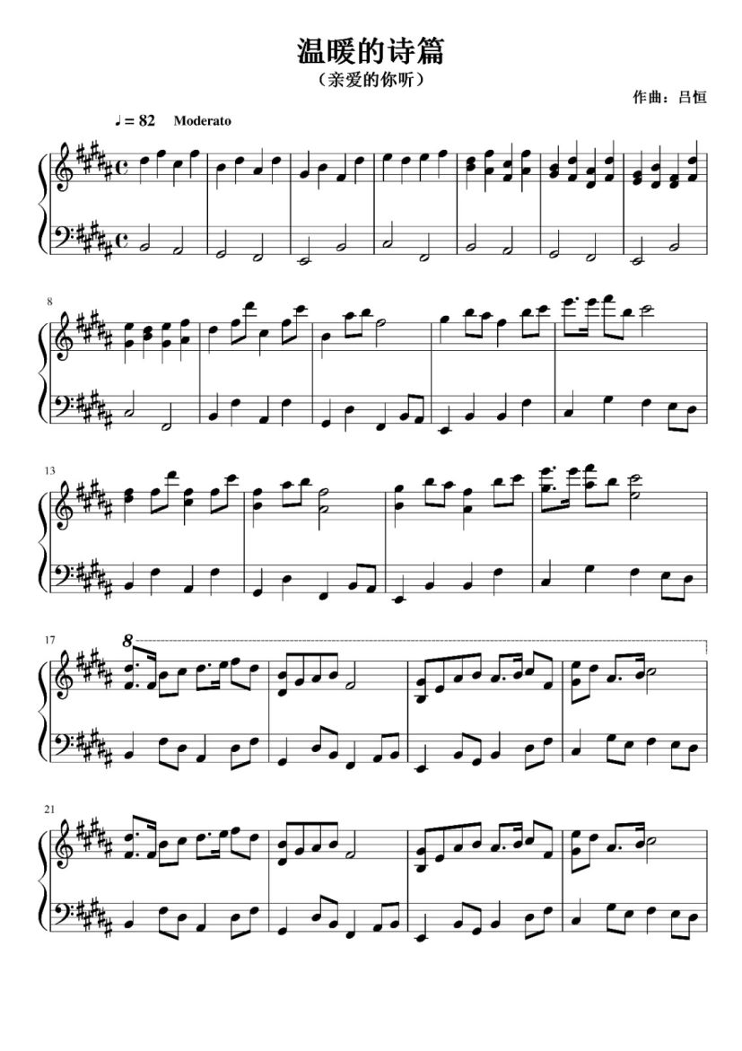 《温暖的诗篇》钢琴谱...