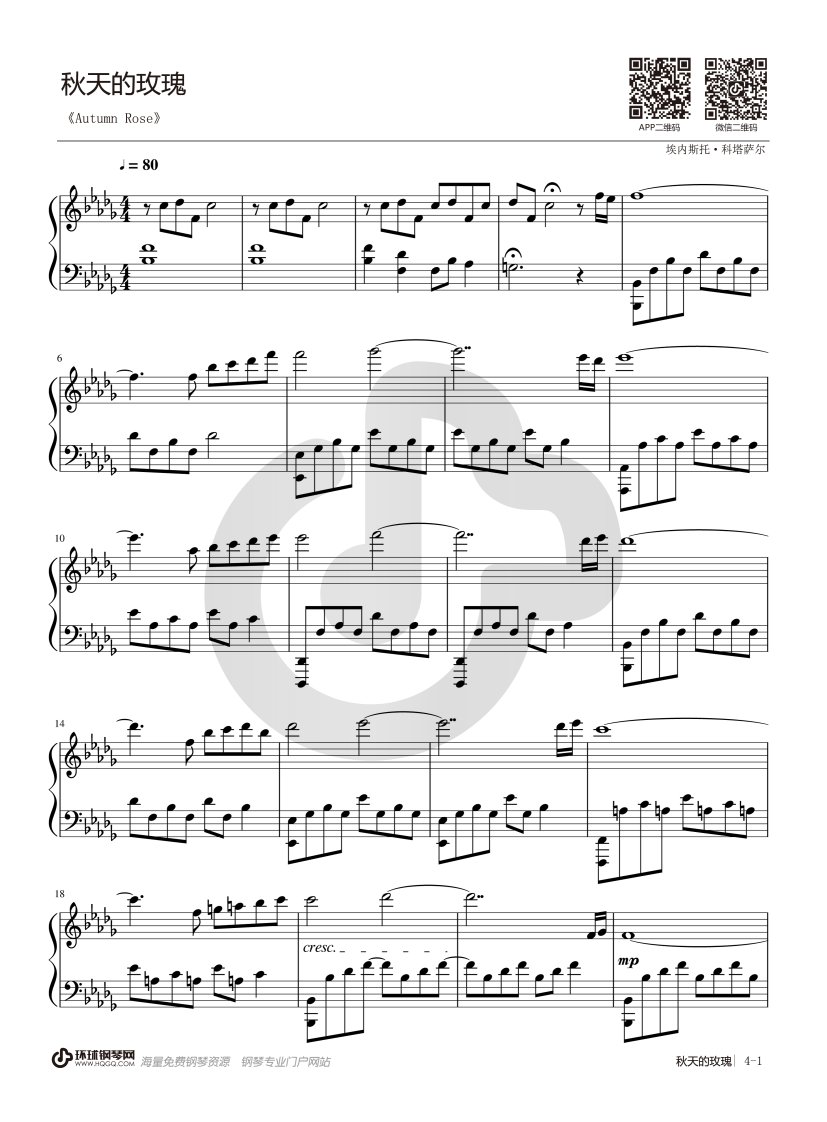 钢琴《秋天的玫瑰》钢琴谱