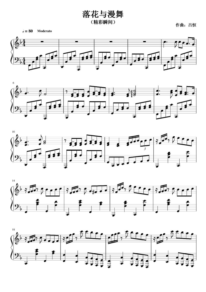 《落花与漫舞》钢琴谱...