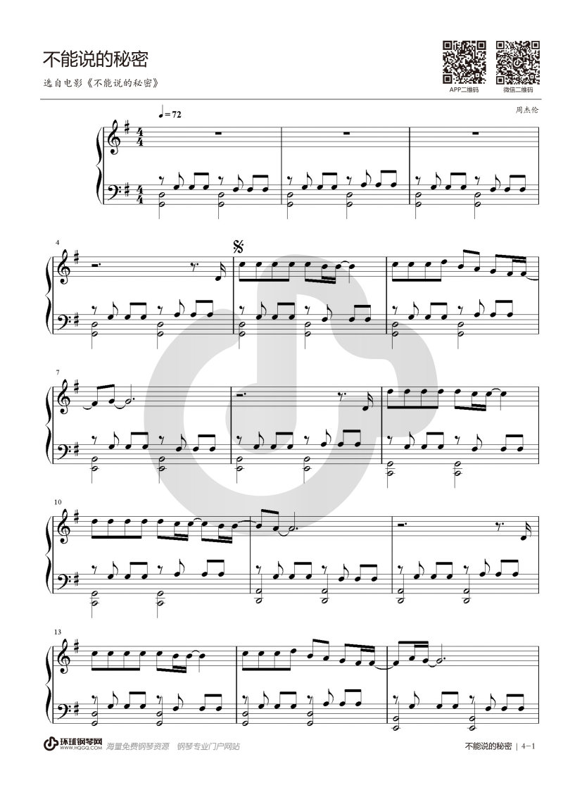 钢琴《不能说的秘密》钢琴谱(选自周杰伦电影《不能说的秘密》)