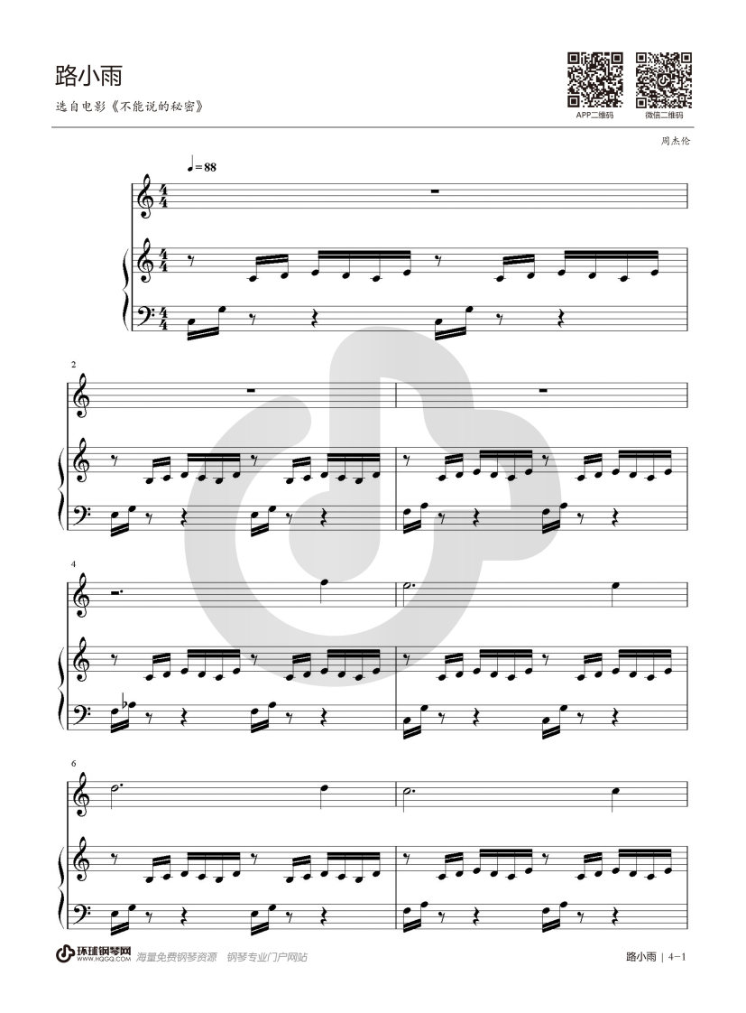 钢琴《路小雨》钢琴谱(选自周杰伦电影《不能说的秘密》)