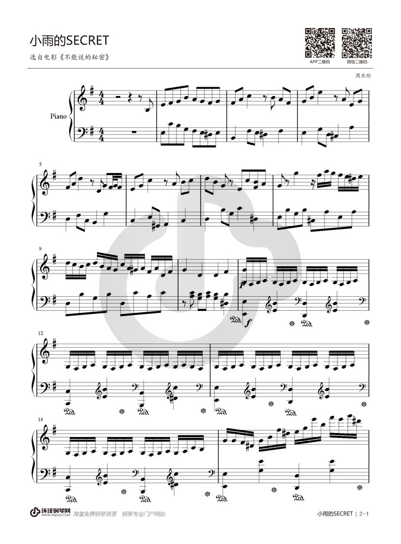 钢琴《小雨的SECRET 》钢琴谱(选自周杰伦电影《不能说的秘密》)
