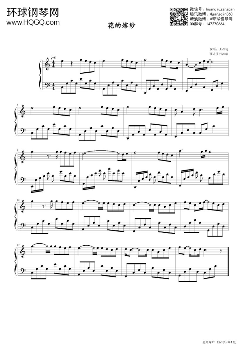钢琴周杰伦《花海》钢琴谱C调简易版
