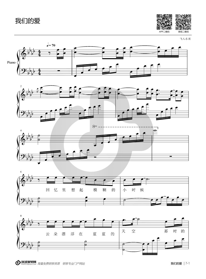钢琴飞儿乐队《我们的爱》钢琴谱