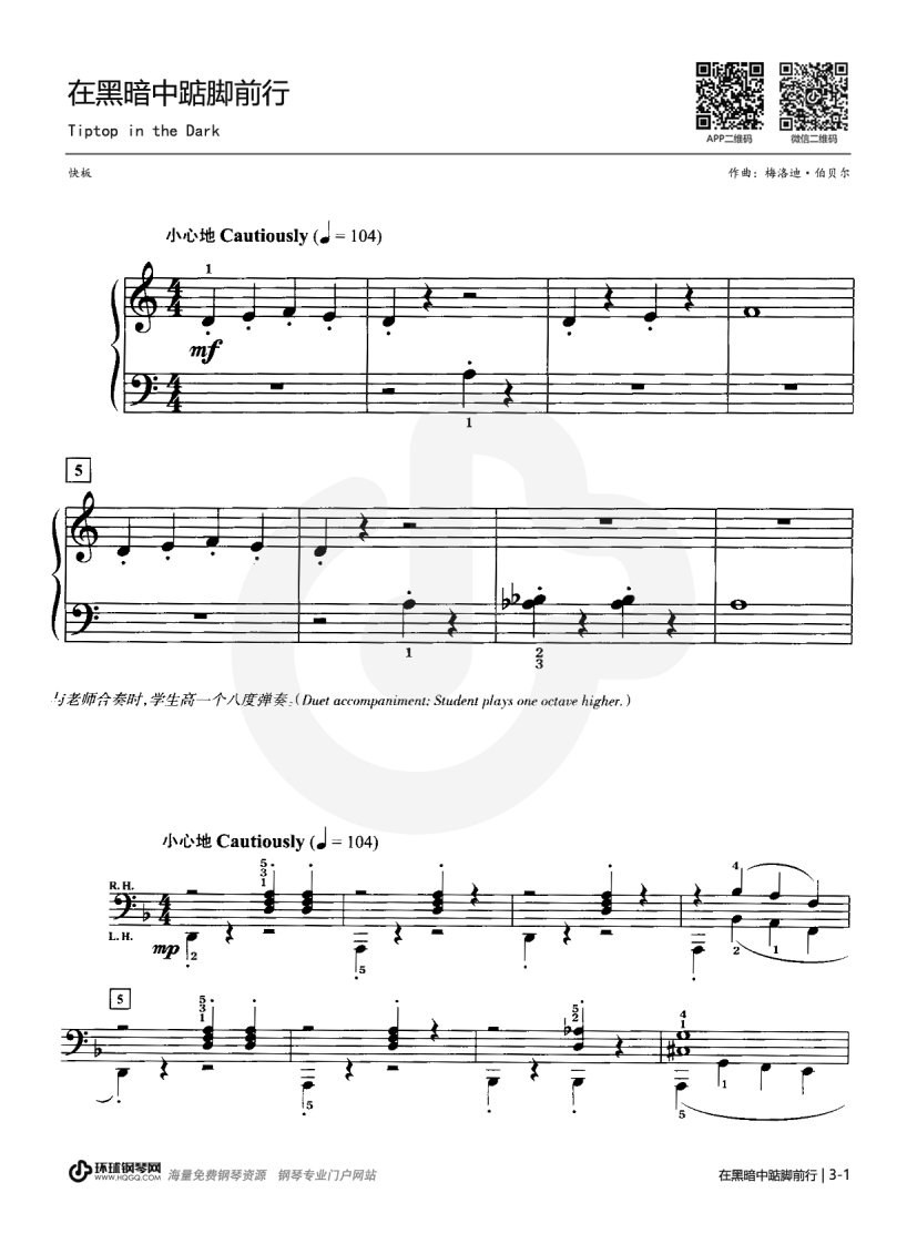 钢琴《在黑暗中踮脚前行》钢琴谱