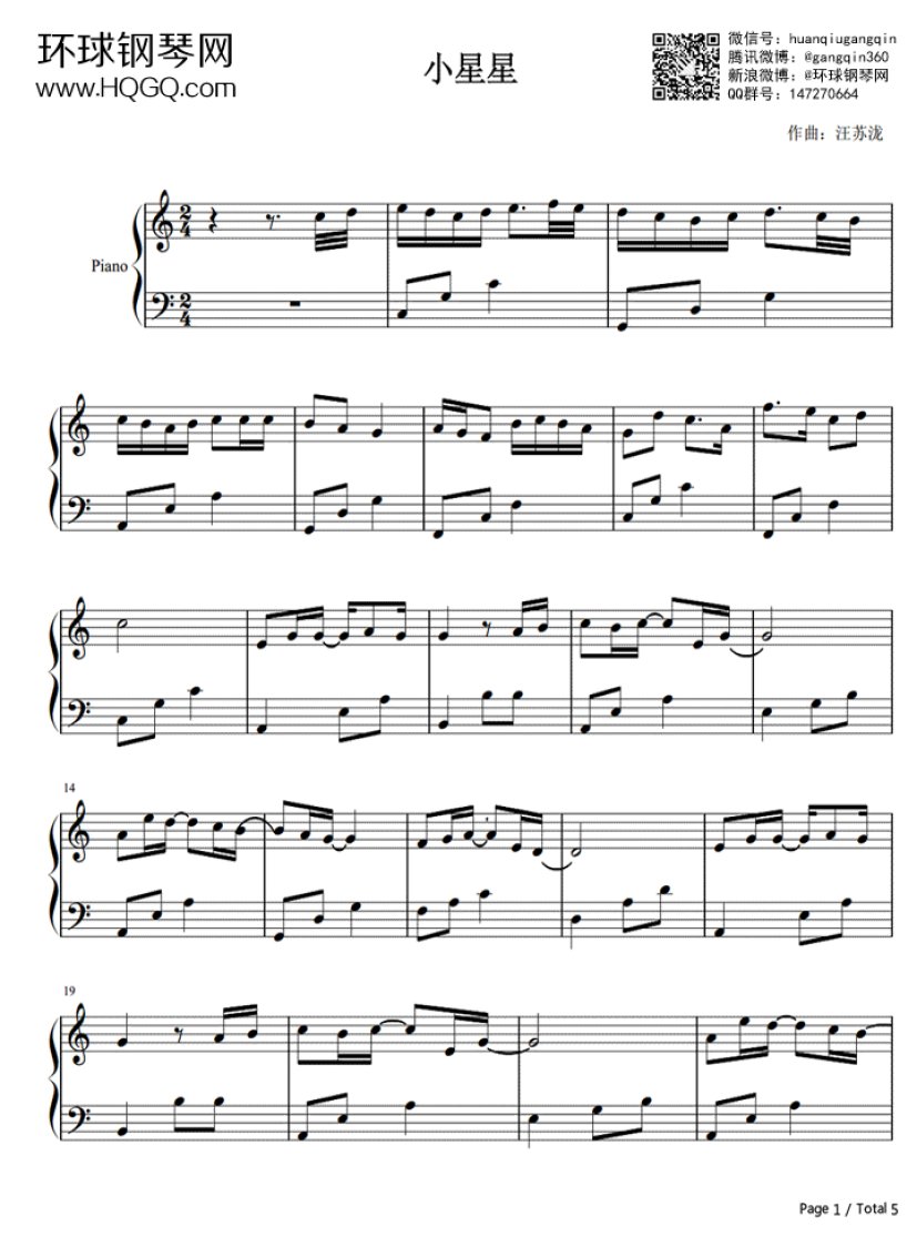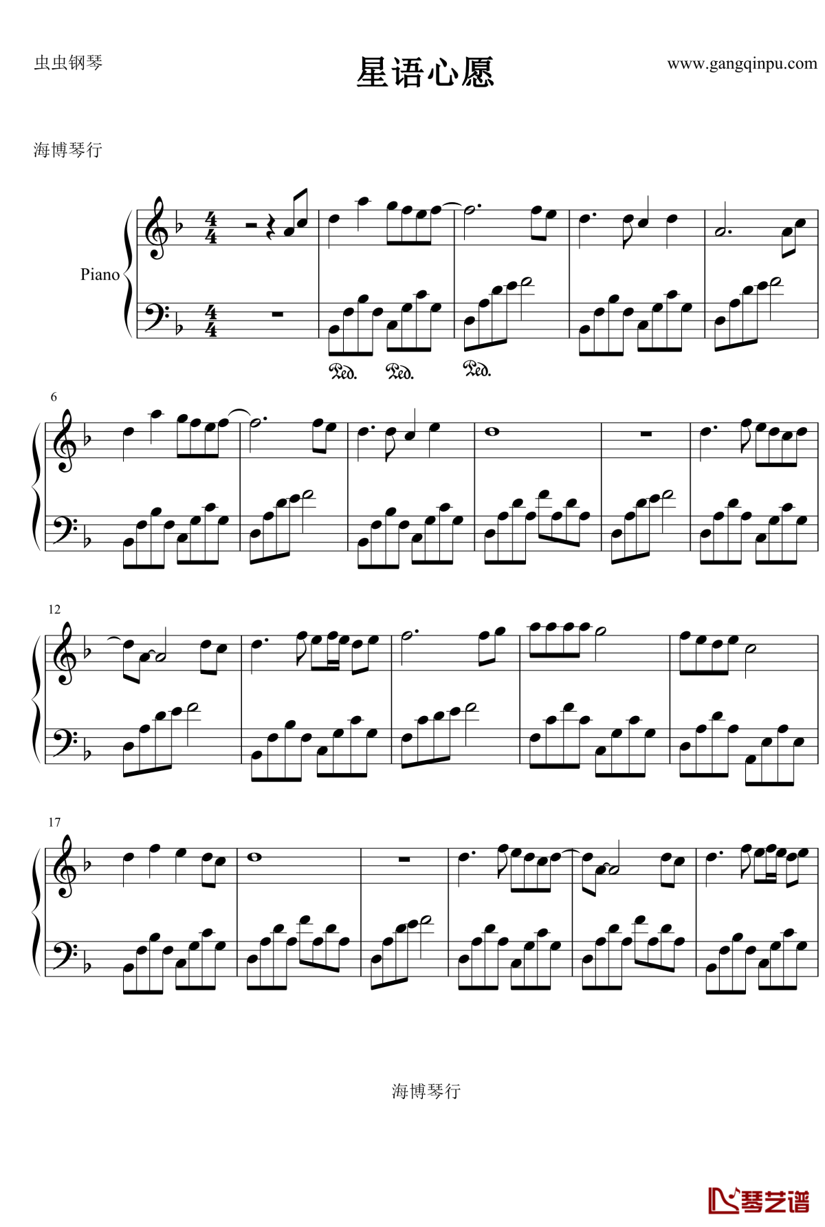 钢琴张柏芝《星语心愿》钢琴谱简易版