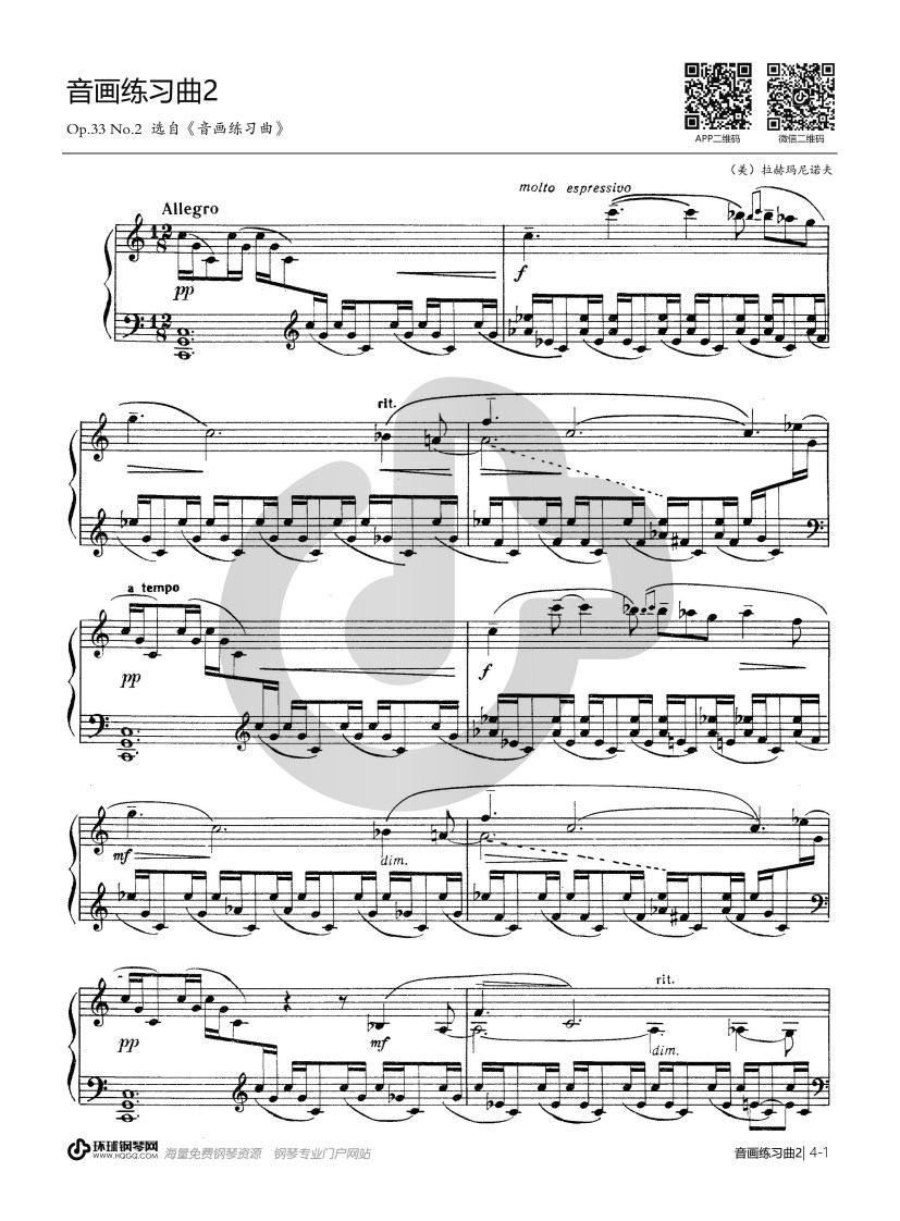 钢琴《委婉情思》钢琴谱(选自《音画练习曲Op33》)