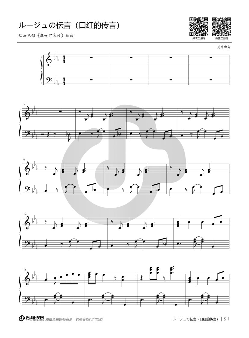 钢琴《ルージュの伝言》钢琴谱(动画电影《魔女宅急便》插曲