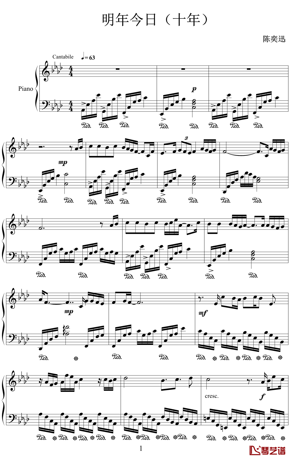 陈奕迅《明年今日》钢琴谱...