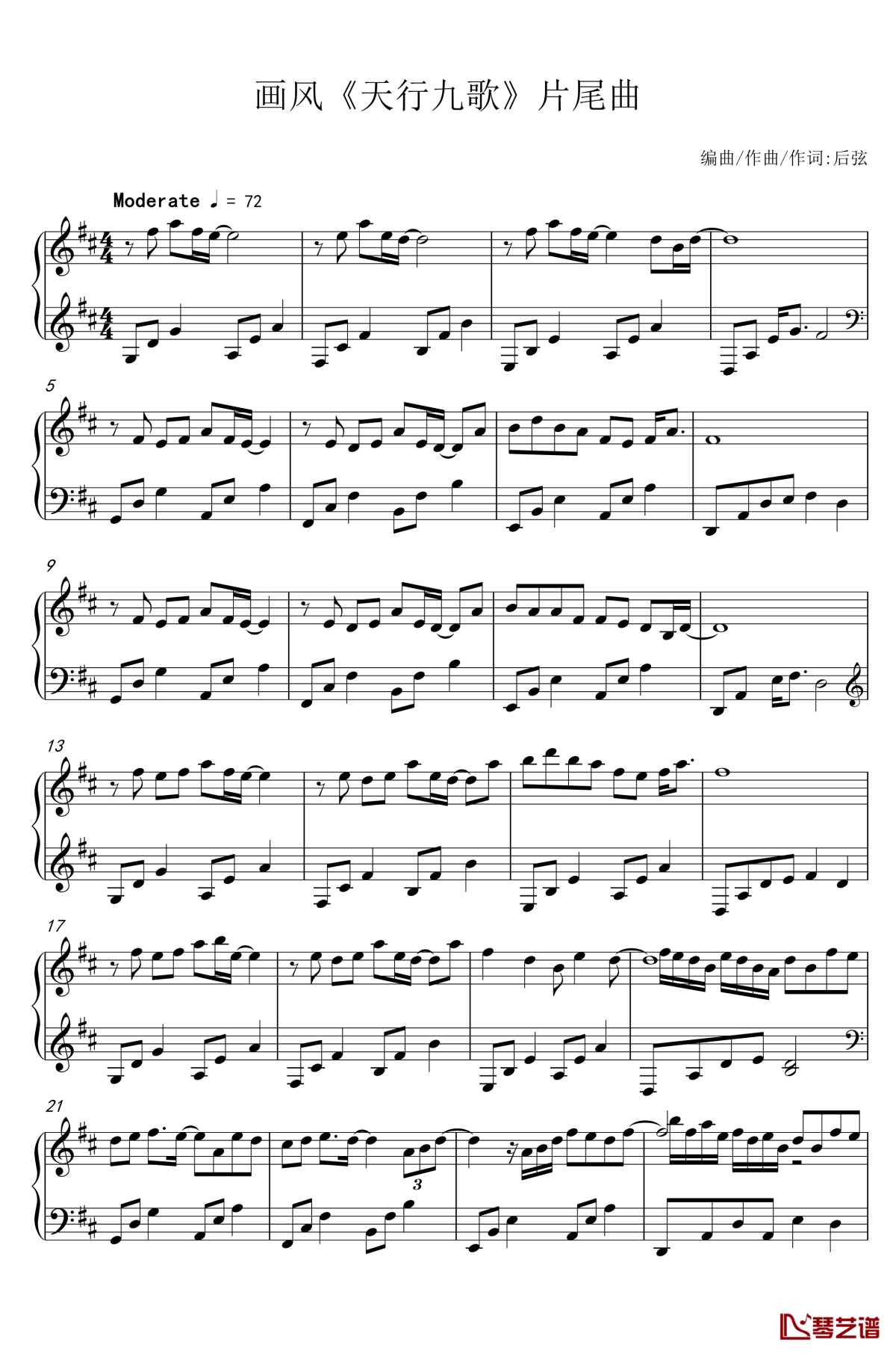 后弦《画风》钢琴谱...