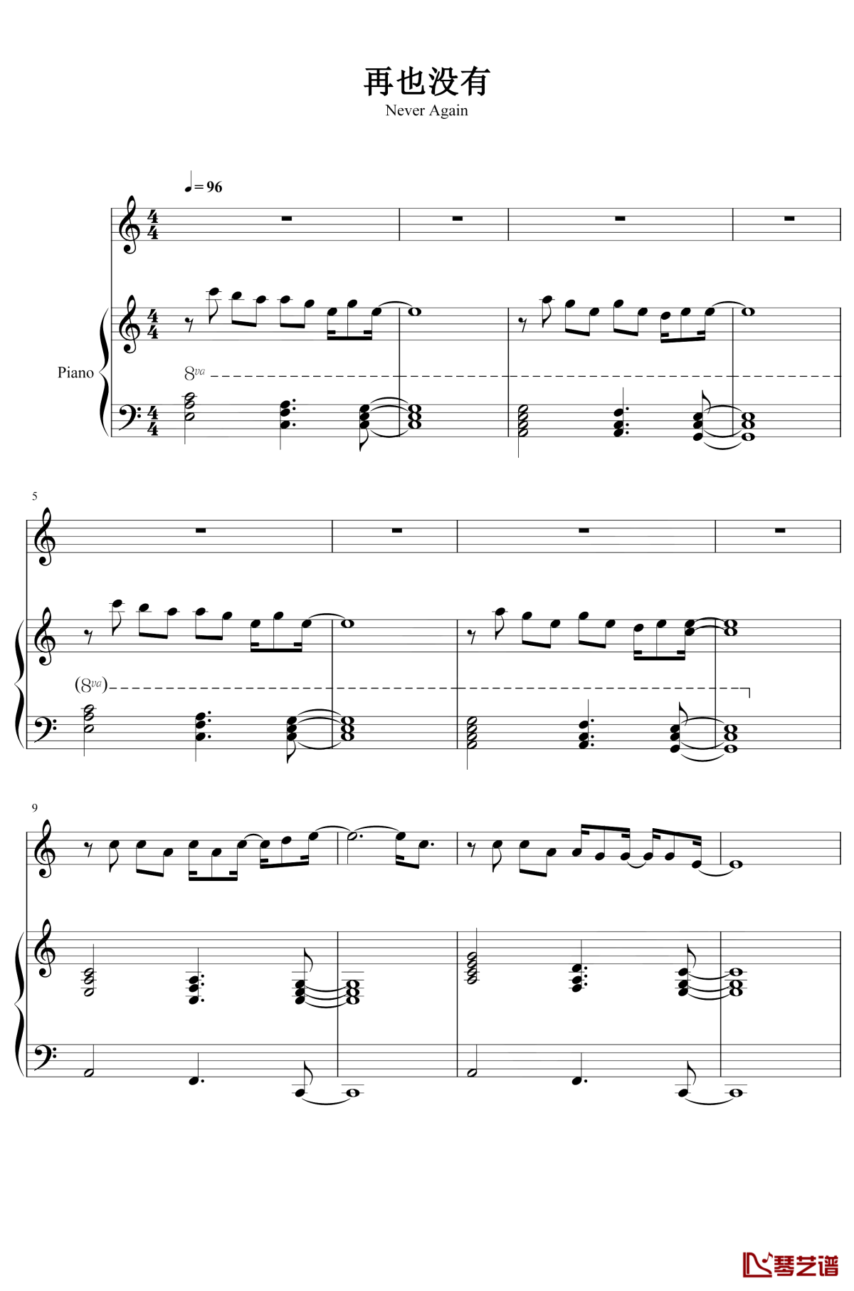 钢琴《再也没有》钢琴谱