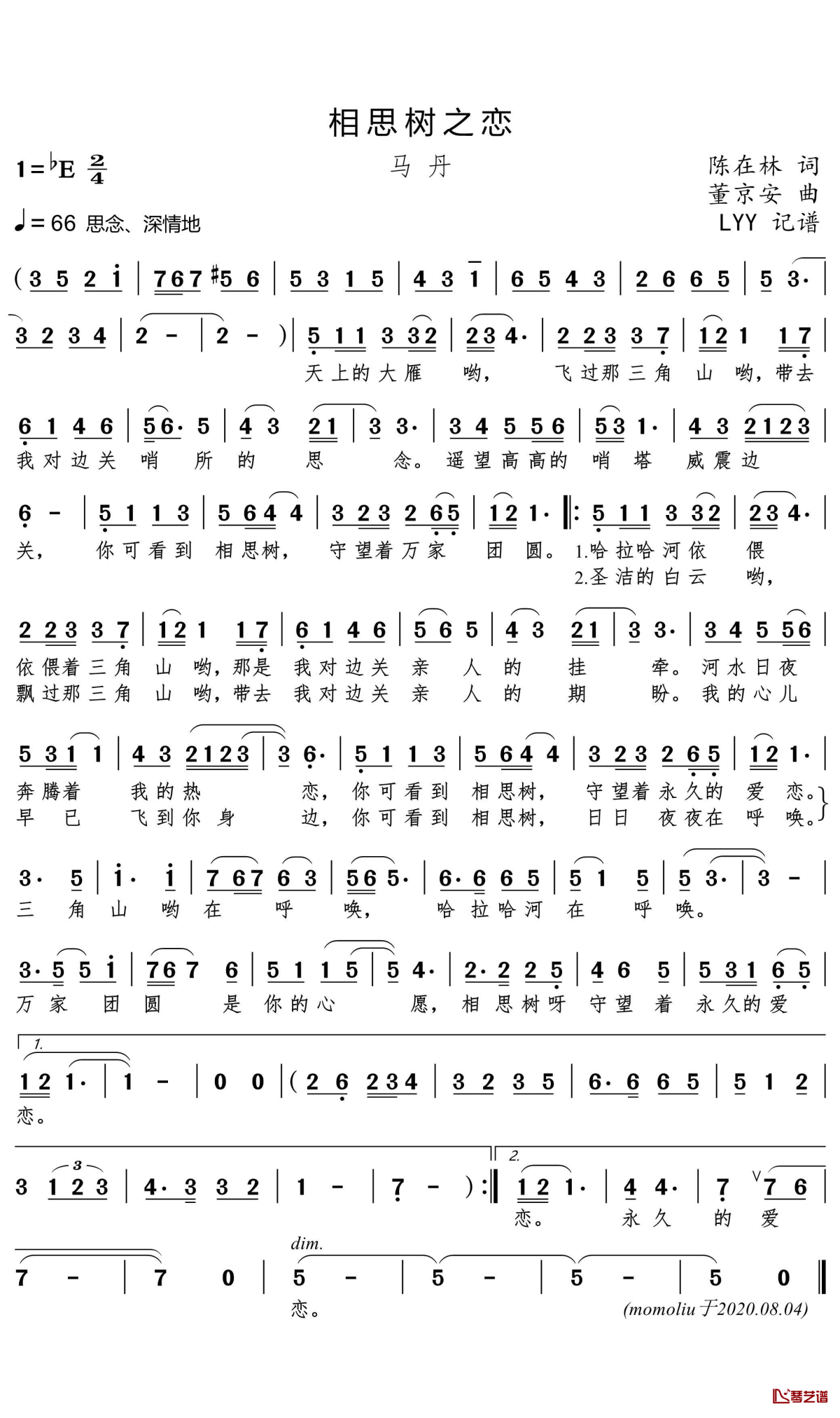 马丹《相思树之恋》简谱...