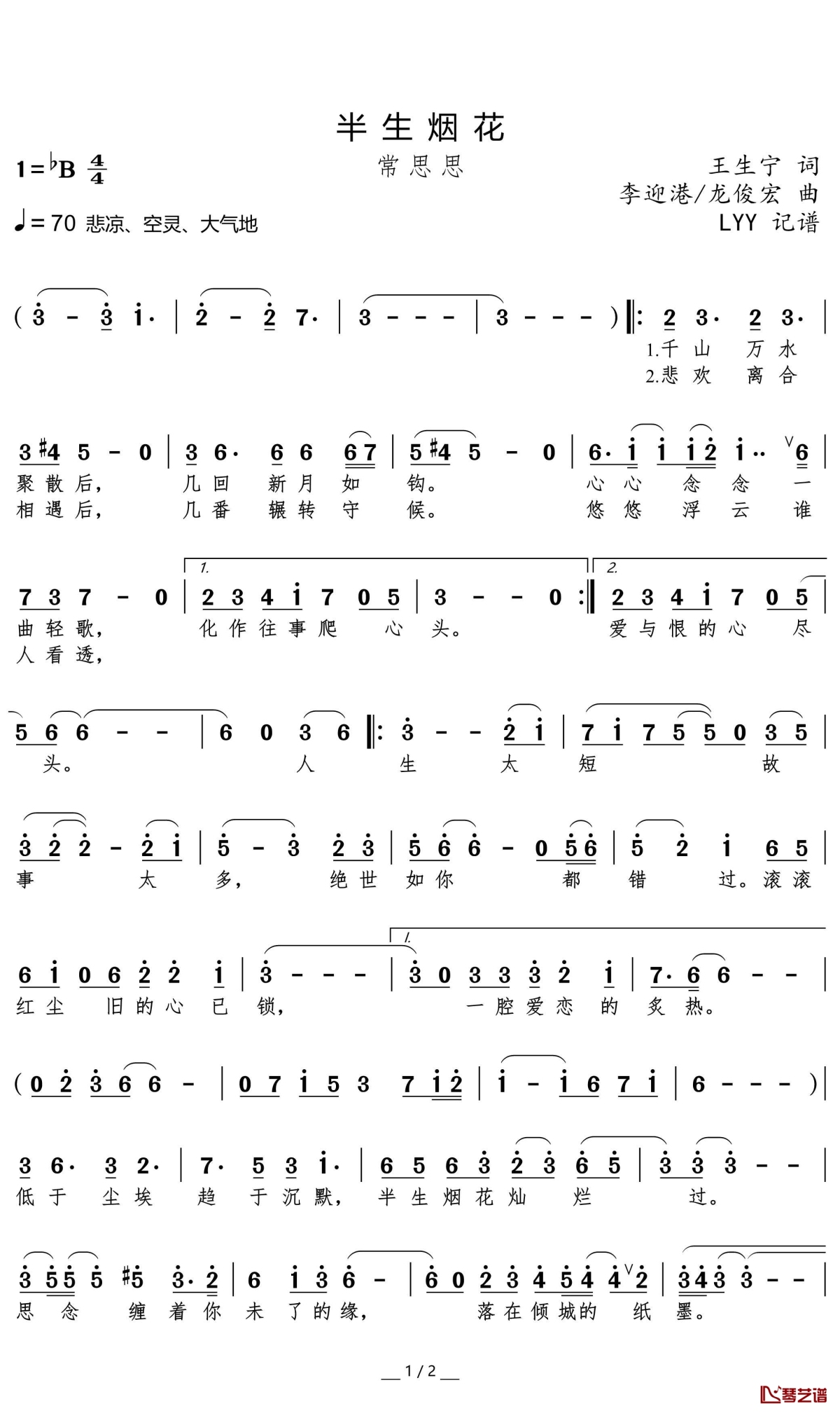 常思思《半生烟花》简谱...