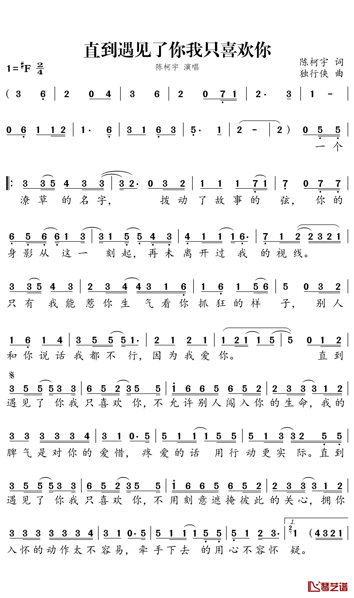 《直到遇见了你我只喜欢你》简谱...
