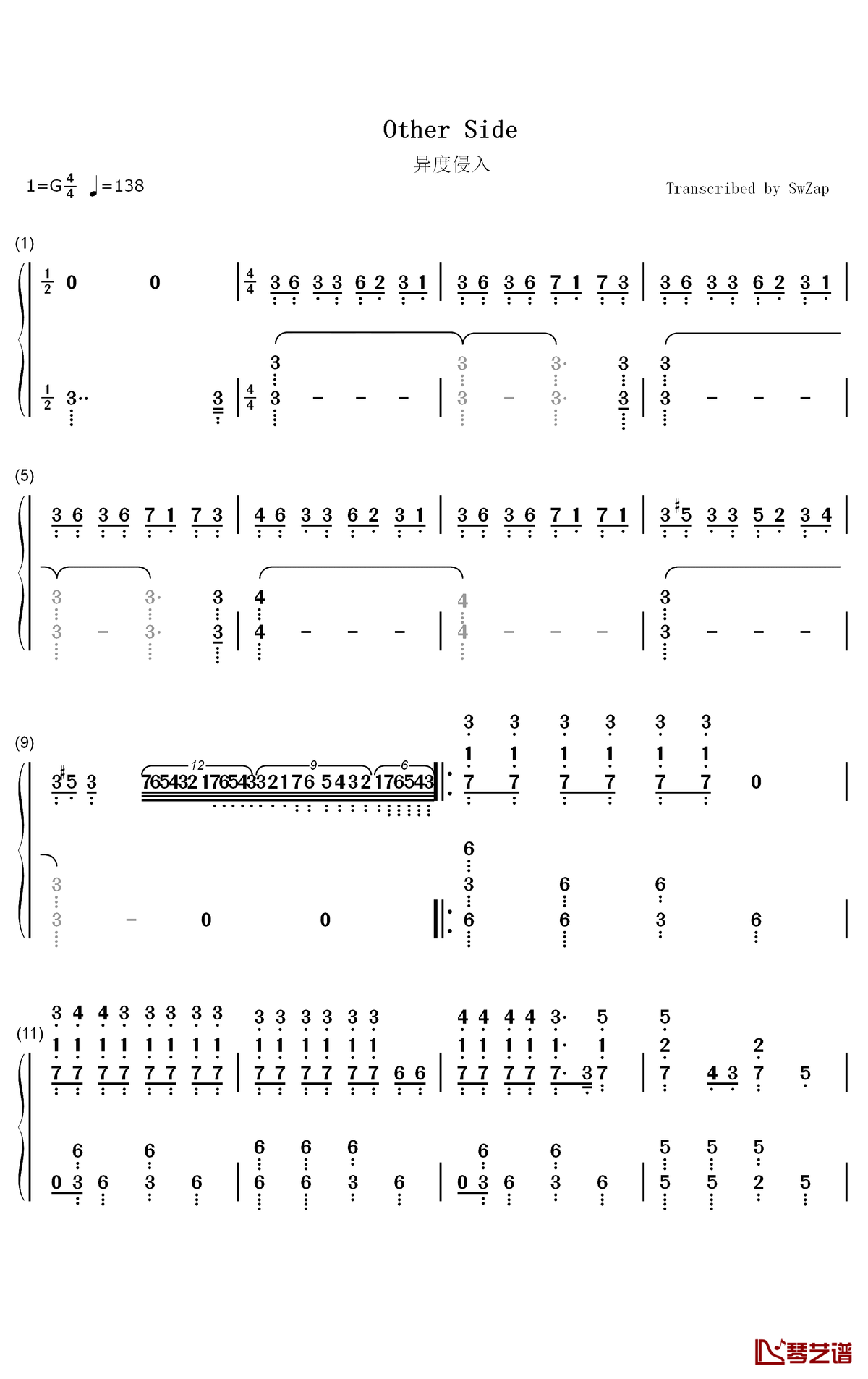 钢琴《Other Side》钢琴简谱-数字双手