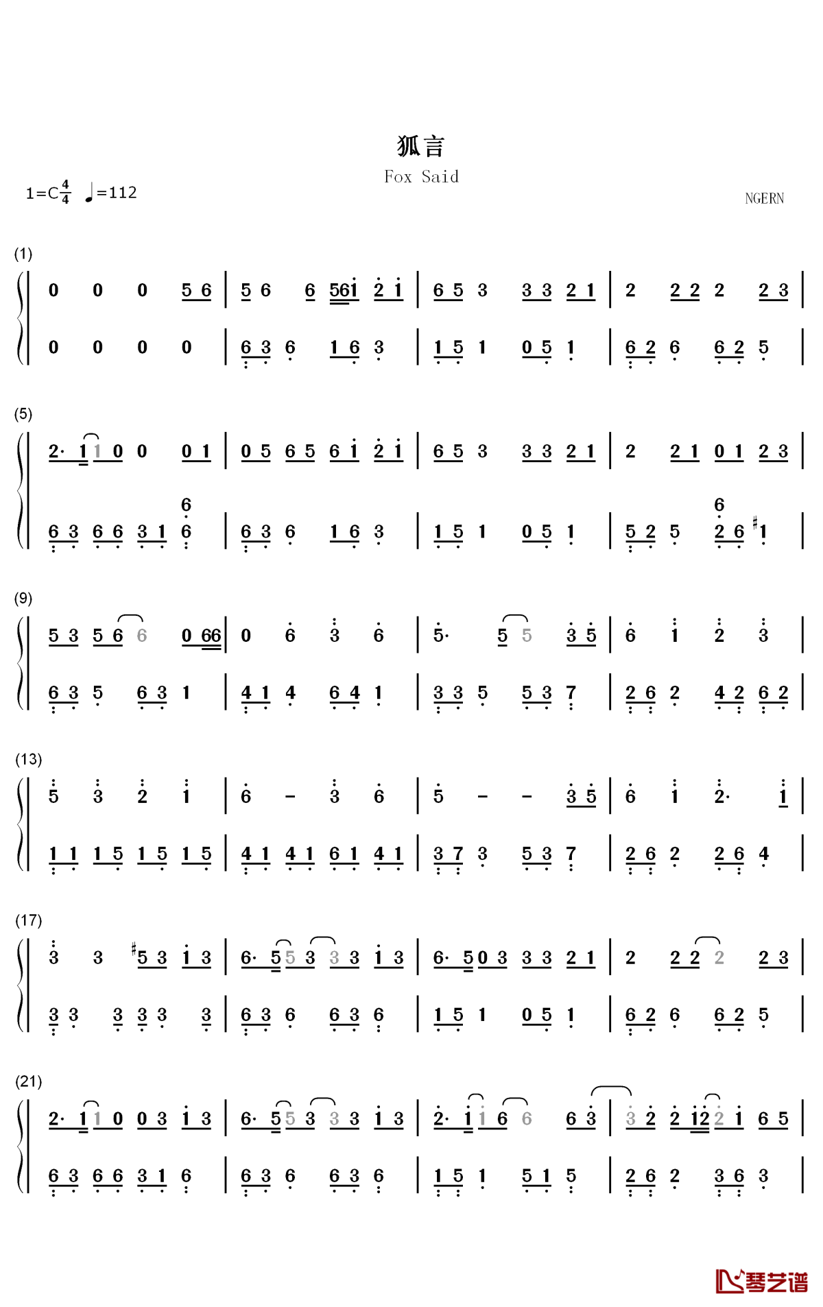 钢琴河图 洛天依《狐言》钢琴简谱-数字双手