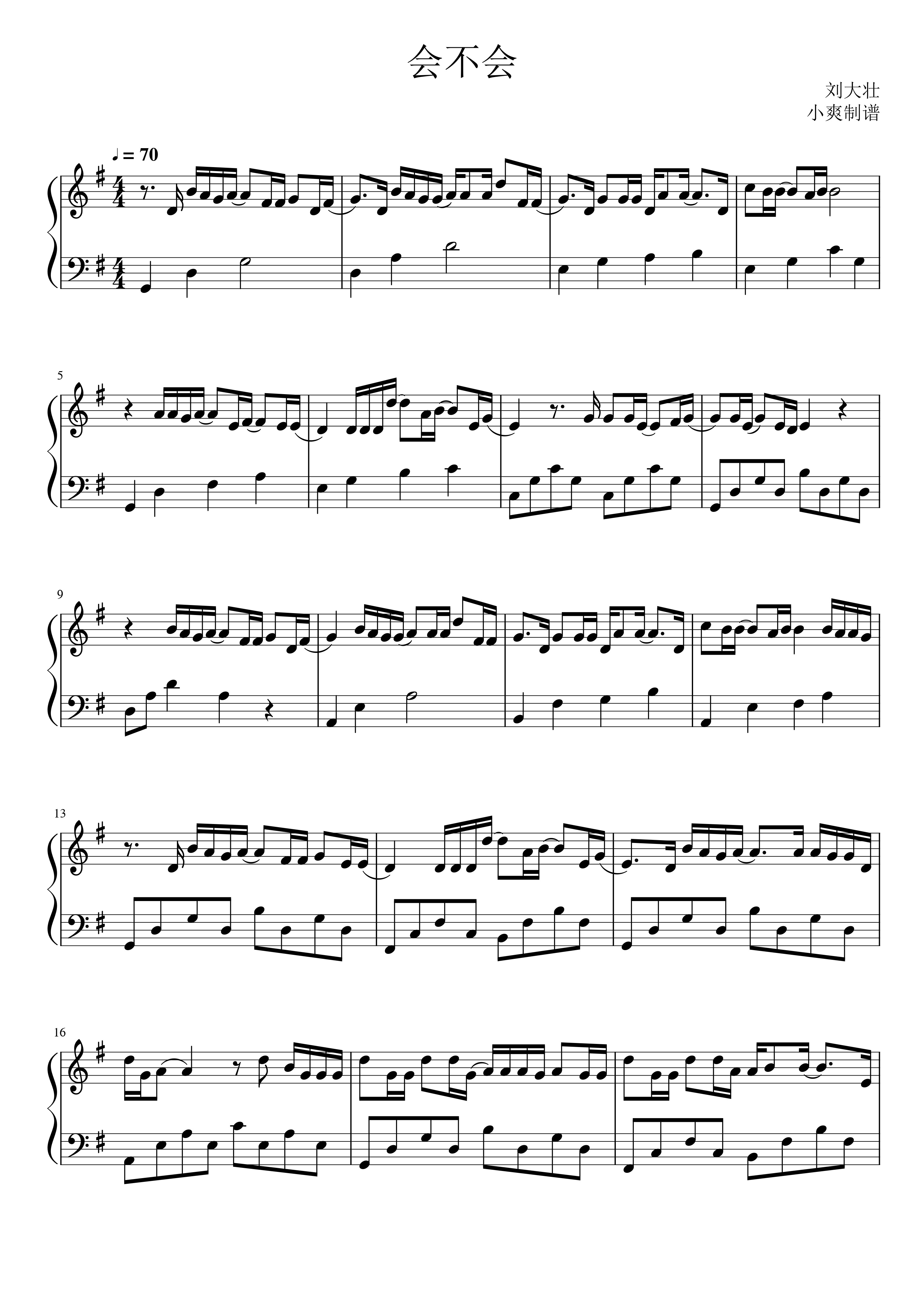刘大壮《会不会》钢琴谱...