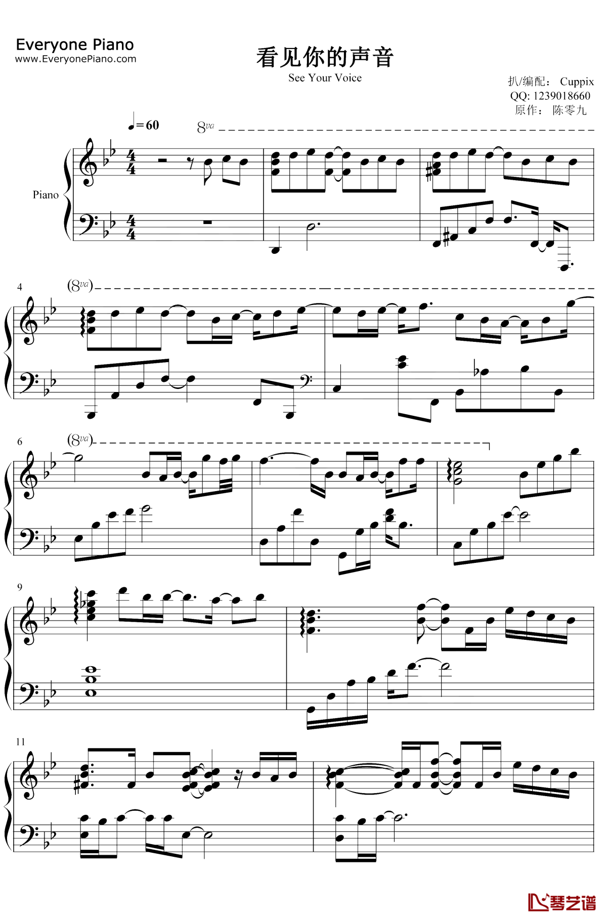陈零九《看见你的声音》钢琴谱...