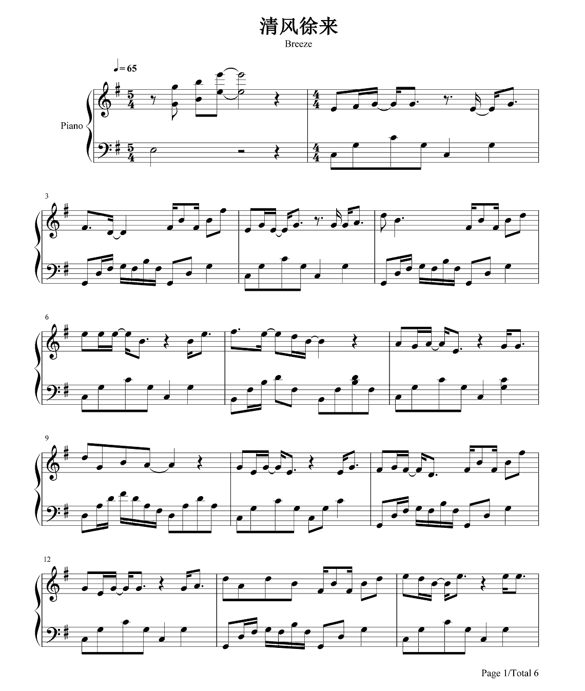 钢琴王菲《清风徐来》钢琴谱