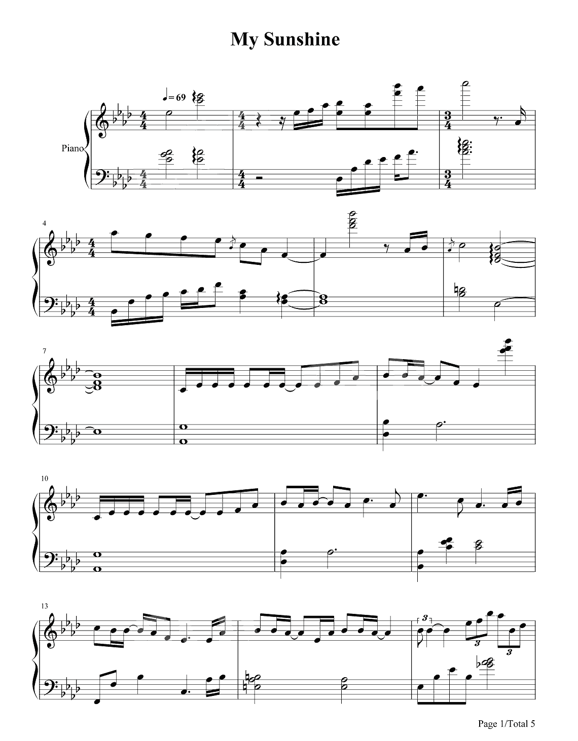 钢琴张杰《My Sunshine》钢琴谱