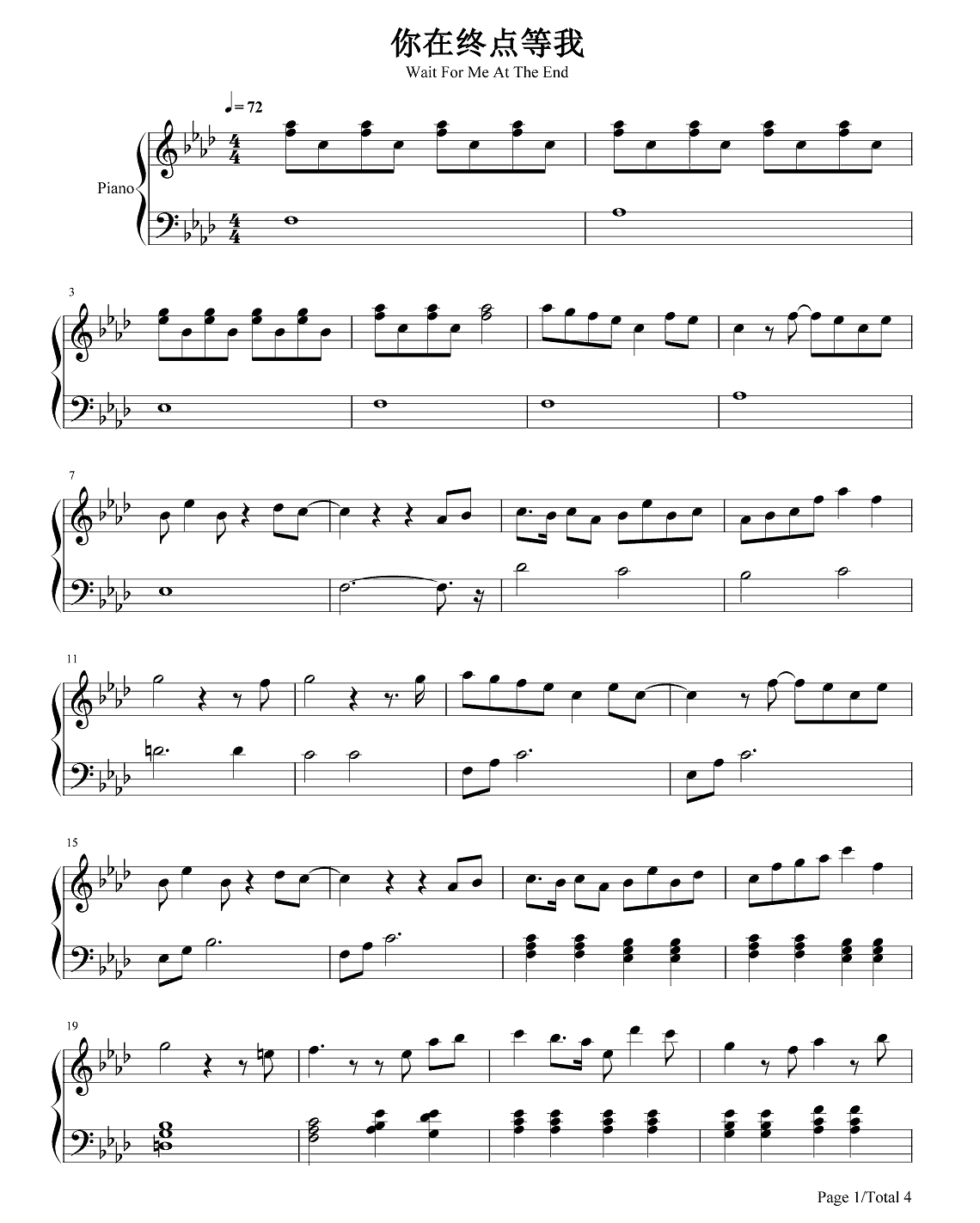 钢琴王菲《你在终点等我》钢琴谱