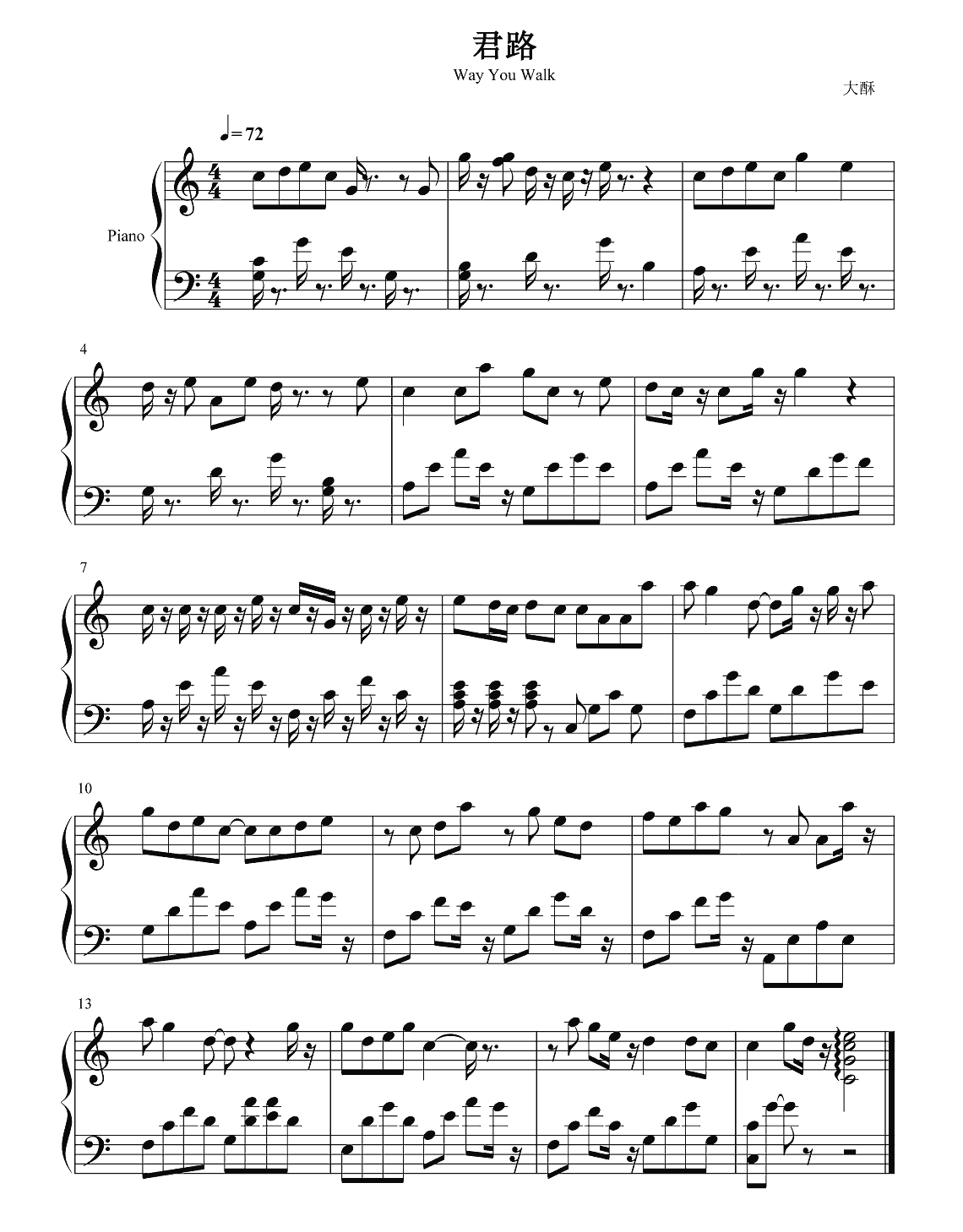 大酥《君路》钢琴谱...