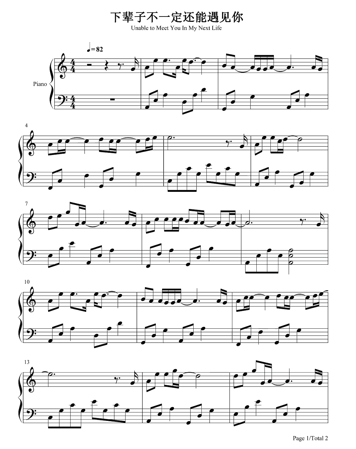 钢琴陈雅森《下辈子不一定还能遇见你》钢琴谱