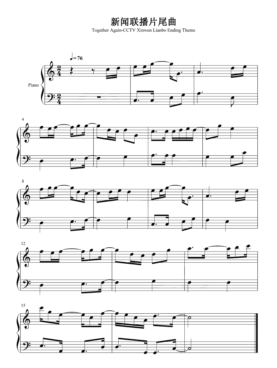 钢琴《新闻联播片尾曲》 钢琴谱