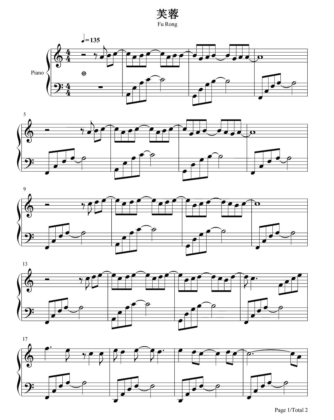 钢琴鞠婧祎《芙蓉》钢琴谱