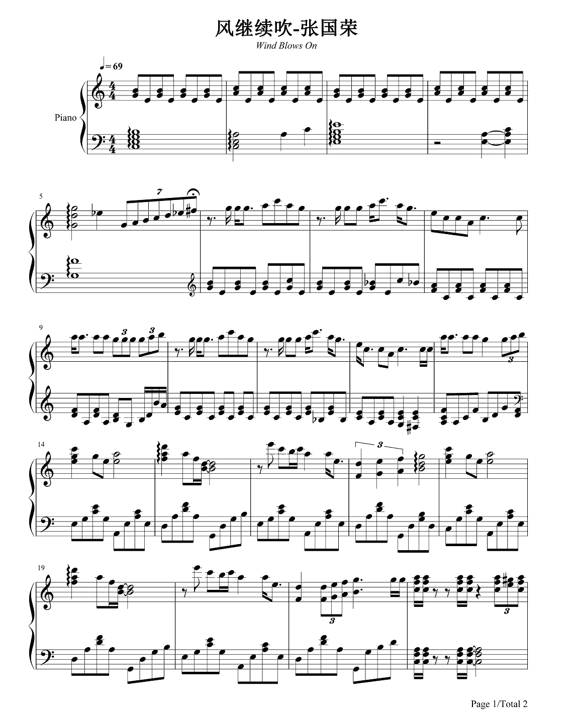 张国荣《风继续吹》钢琴谱...