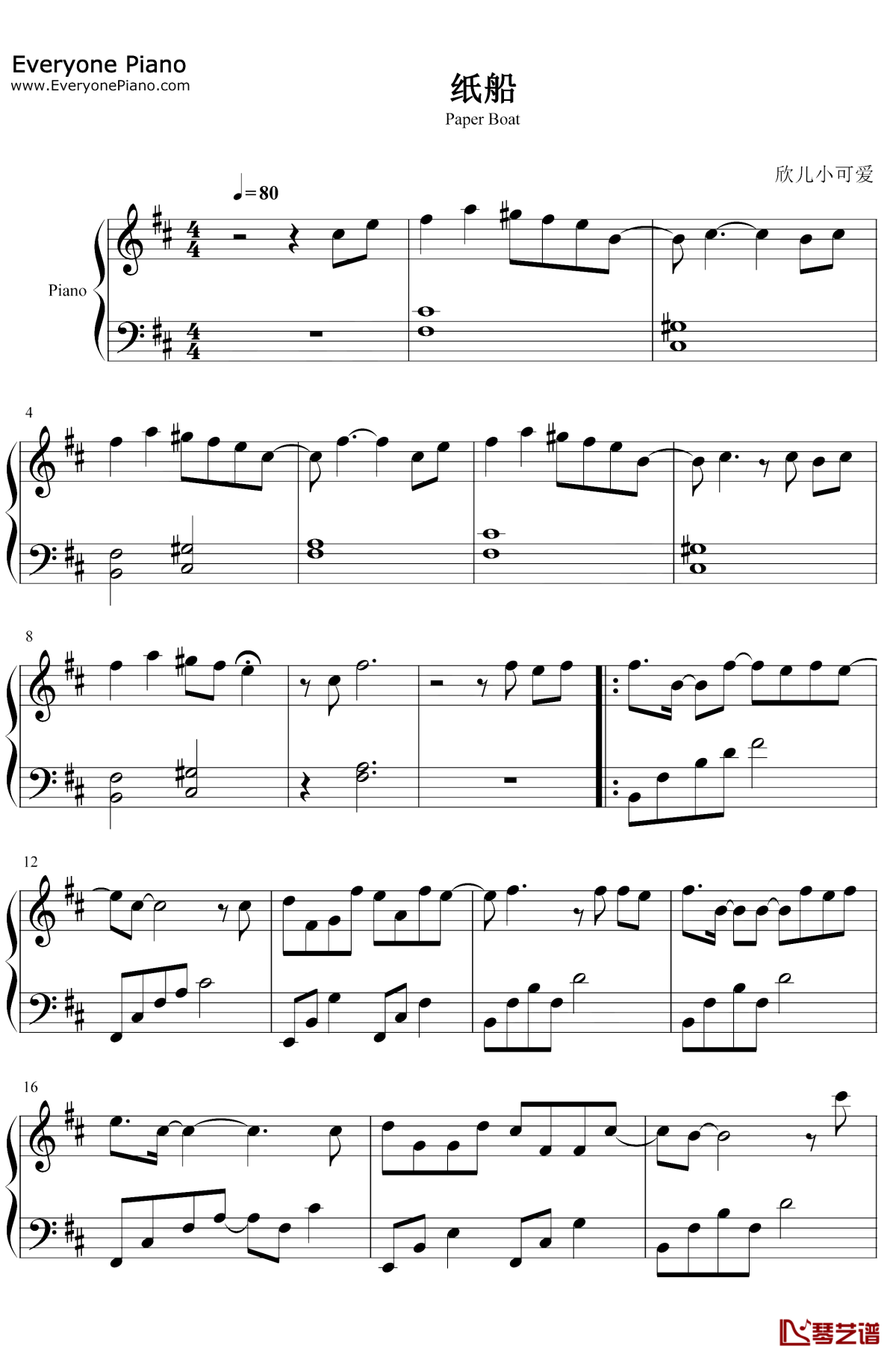钢琴薛之谦郁可唯《纸船》钢琴谱