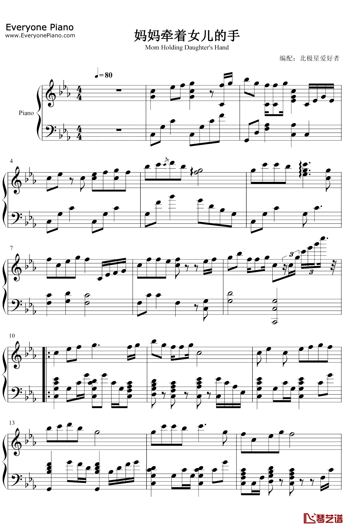 钢琴《妈妈牵着女儿的手》钢琴谱