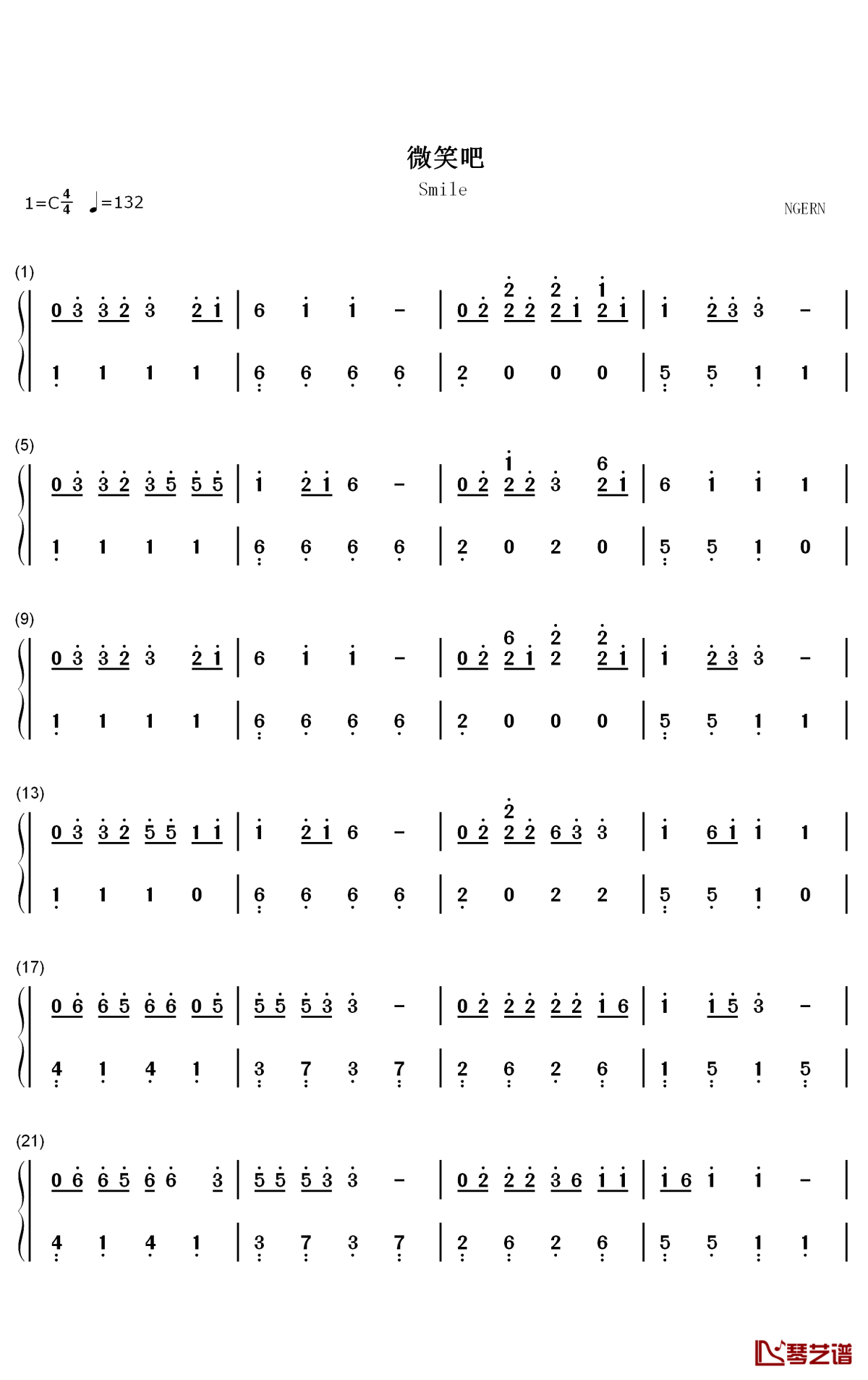 钢琴《微笑吧》钢琴简谱-数字双手