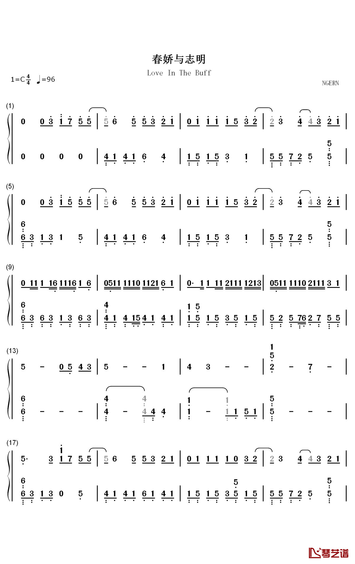 钢琴《春娇与志明》钢琴简谱-数字双手