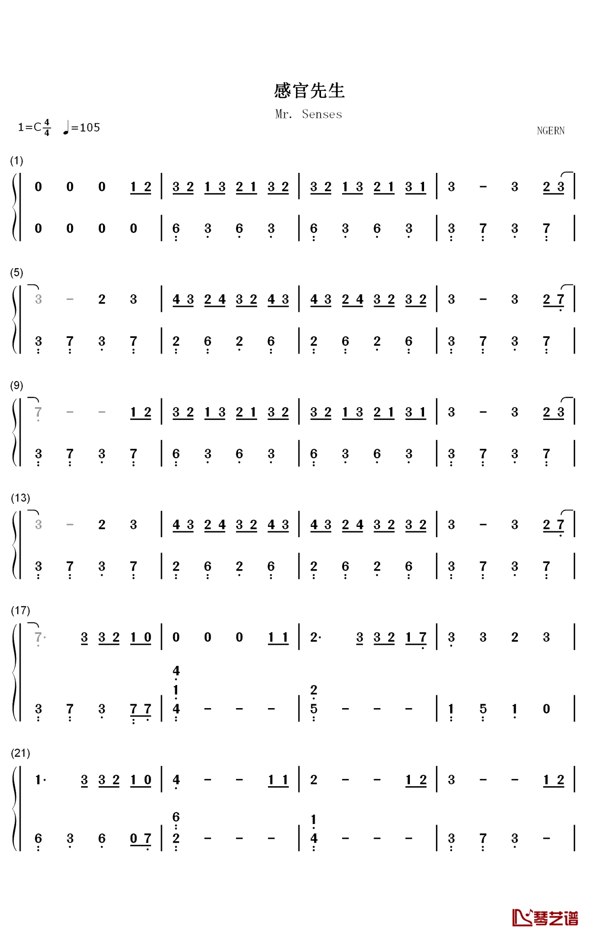 刘凤瑶《感官先生》钢琴简谱-数字双手...