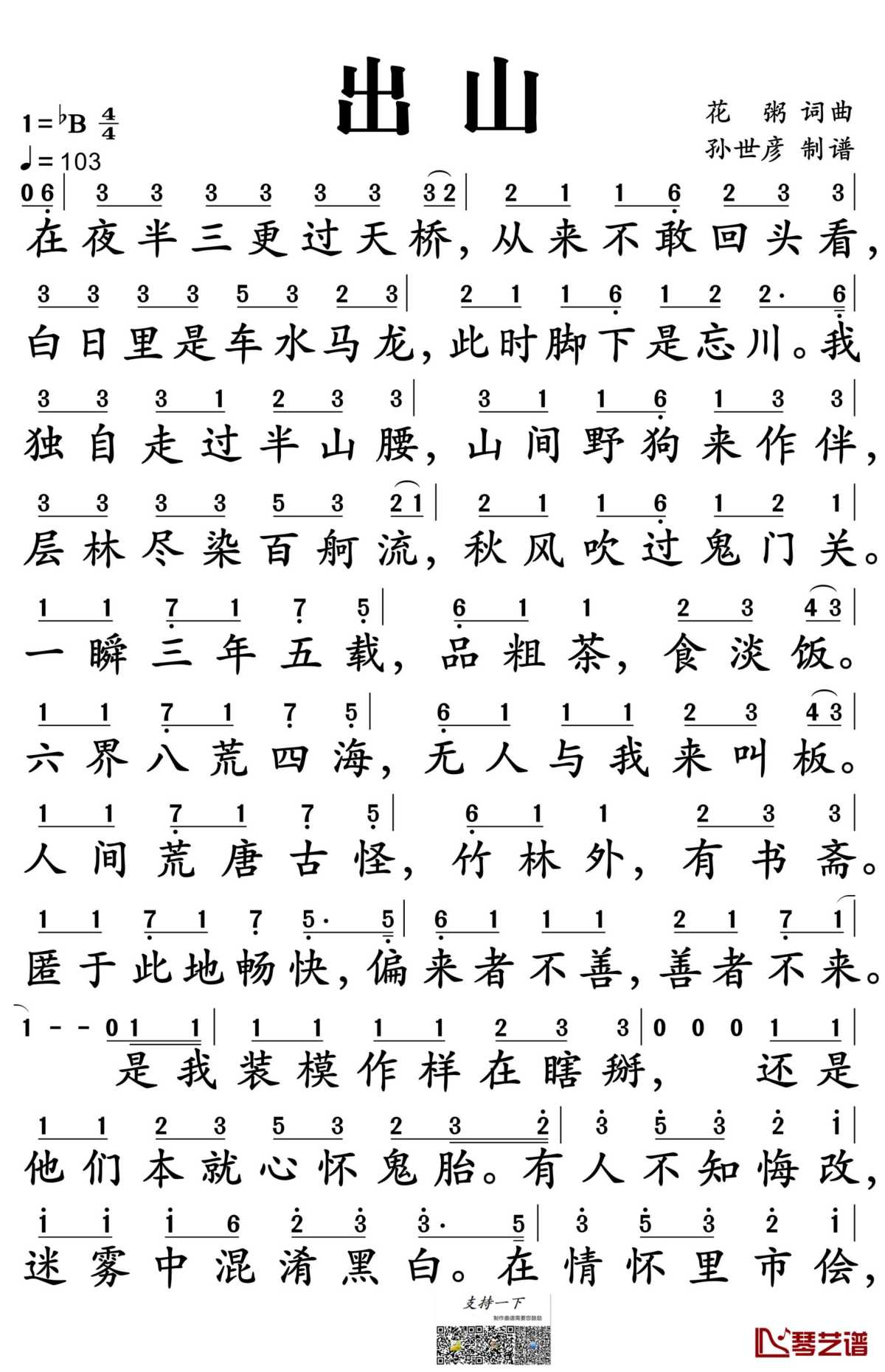 王胜男/花粥《出山》简谱...