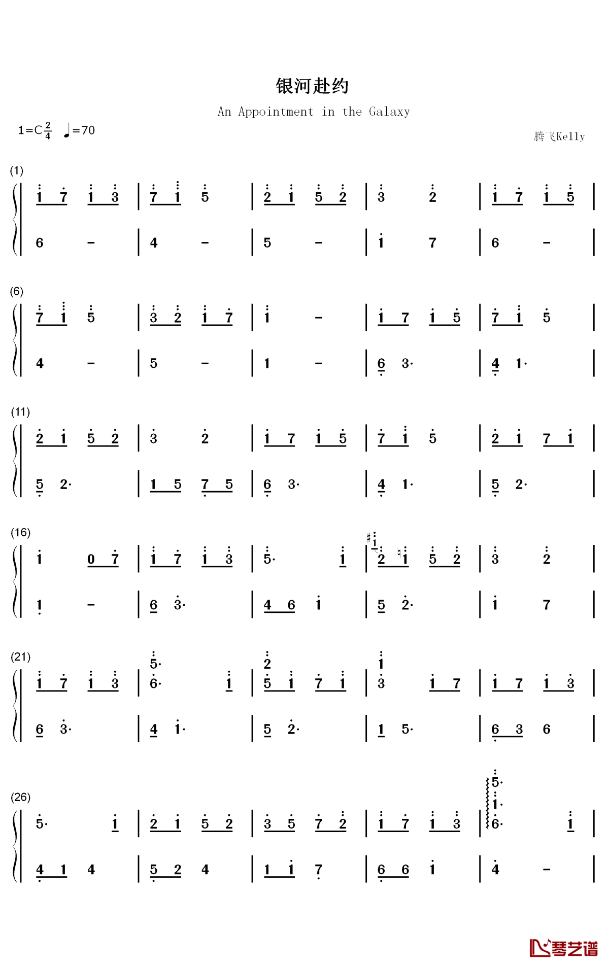 钢琴《银河赴约》钢琴简谱-数字双手