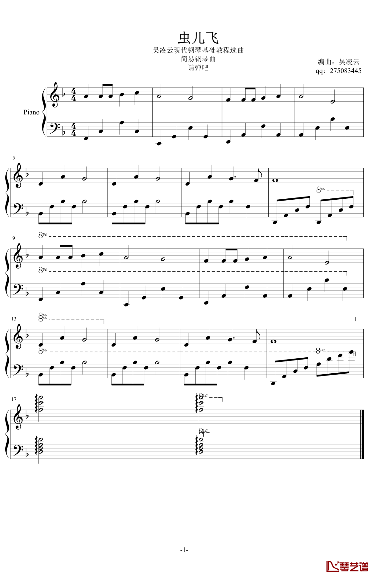 钢琴《虫儿飞》钢琴谱