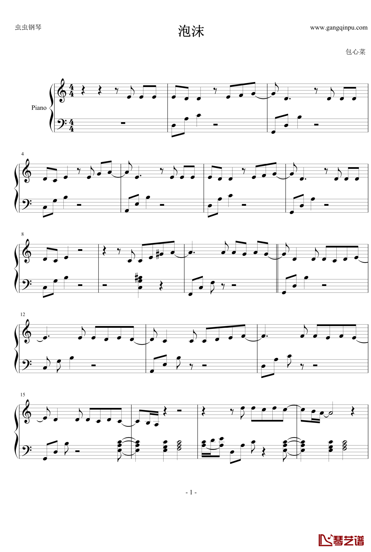 钢琴邓紫棋《泡沫》钢琴谱-C调简易版