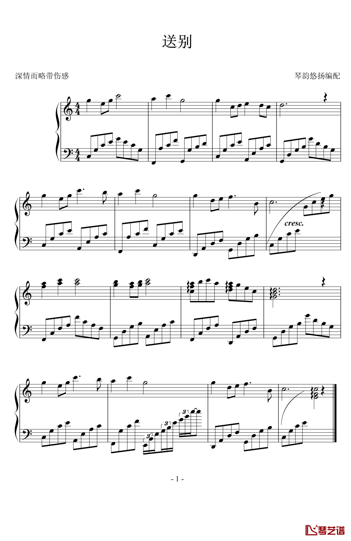 《送别》钢琴谱-简易版...