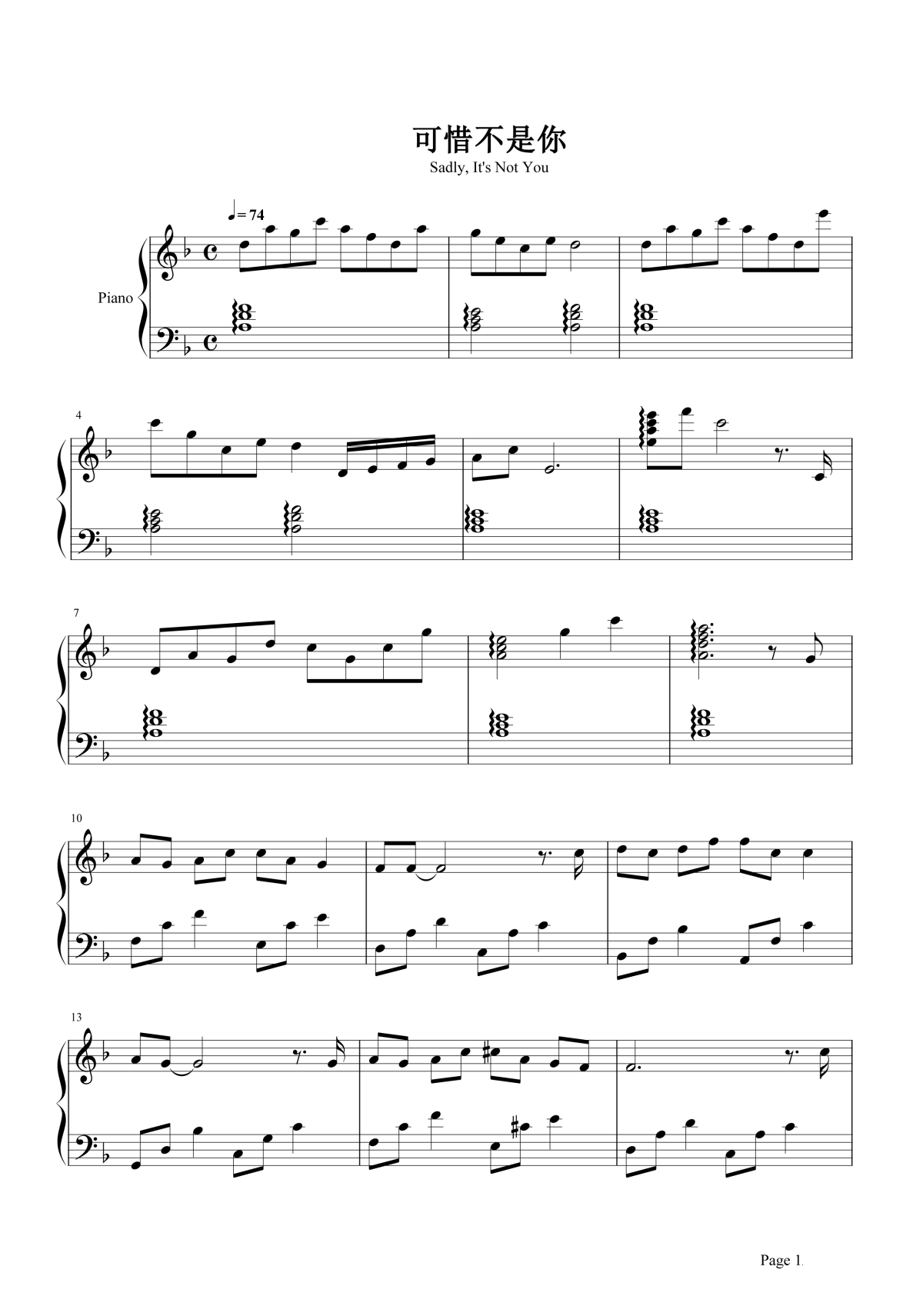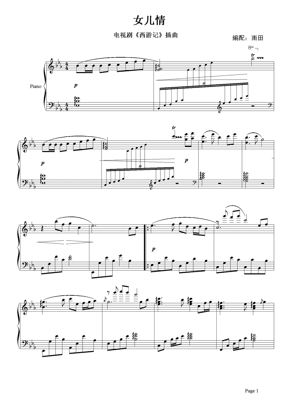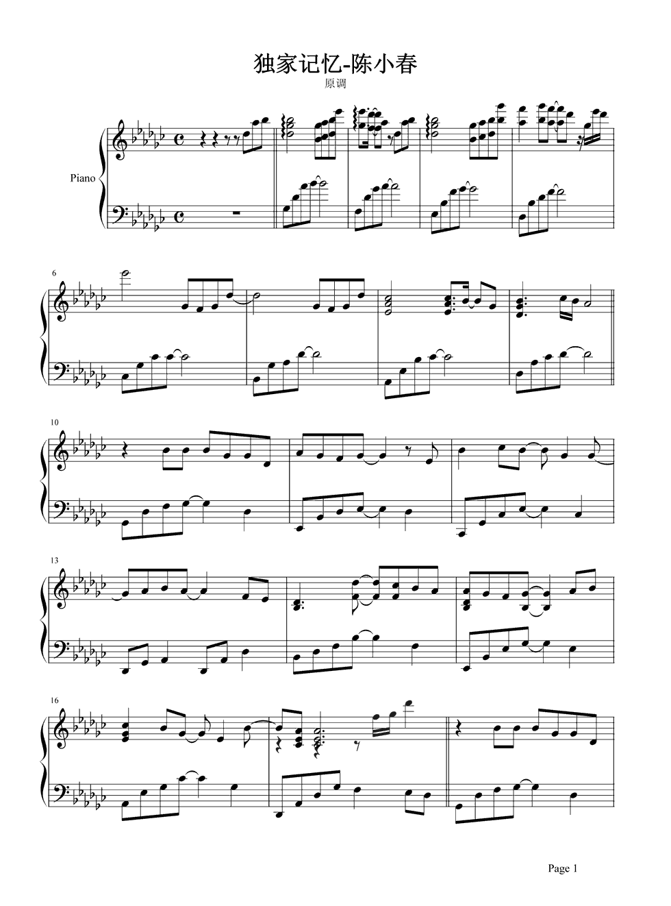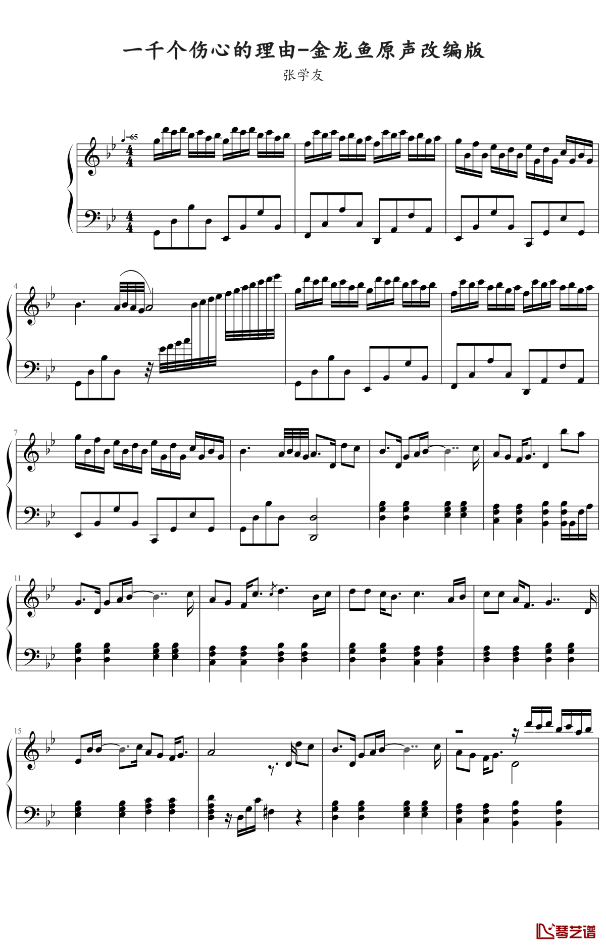 钢琴张学友《一千个伤心的理由》钢琴谱